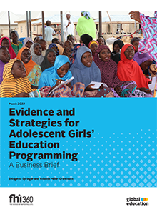Evidence demonstrates that programs specifically targeting adolescent girls provide high economic, health and social protection dividends. This brief highlights the critical importance of educating these girls, drawing on this evidence and FHI 360’s experience navigating the challenges that adolescent girls face in going to and remaining in school. Examples of FHI 360 programs that are successfully addressing the issues at stake are also summarized.