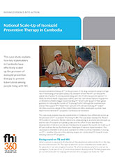 This case study explains how stakeholders in Cambodia effectively scaled up the provision of isoniazid preventive therapy (IPT) to prevent tuberculosis among people living with HIV. The publication covers the extent of tuberculosis and HIV in Cambodia, institutions collaborating to promote national scale-up and the role of research and global guidance in this effort. It also describes the development of national policies and frameworks to support the launch and scale-up of IPT and outlines facilitators and challenges in national implementation. The case study provides information for other countries interested in scaling up IPT.